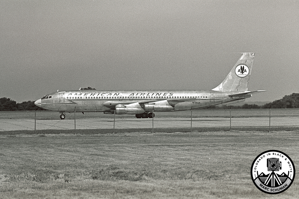The most widely built and financially successful first-generation four-engine passenger jet, the Boeing 707 revolutionized commercial air travel in the early 1960’s. Within a few years after jet airliners were introduced, piston-driven aircraft disappeared from longer routes throughout the world. Seen here on the tarmac at the Tulsa Airport preparing for take-off, this image was made with a Yashica J-5 SLR using a 90-230mm f4.5 Yashinon zoom lens on Kodak film.