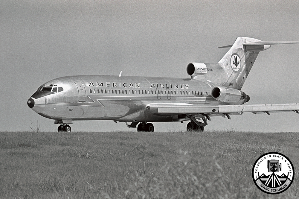 The first commercially successful medium range commercial airliner and the only trijet Boeing ever produced, 727’s were in wide use by the late1960’s. Within a few years, piston-driven aircraft were retired from many shorter routes as 727’s proliferated. Nearly three times as many 727’s were produced as 707’s, though the 707 airframe continues in use in several military variants, including KC-135 refueling aircraft and several command and surveillance versions. Seen here on the tarmac at the Tulsa Airport preparing for take-off, this image was made with a Yashica J-5 SLR using a 90-230mm f4.5 Yashinon zoom lens on Kodak film.