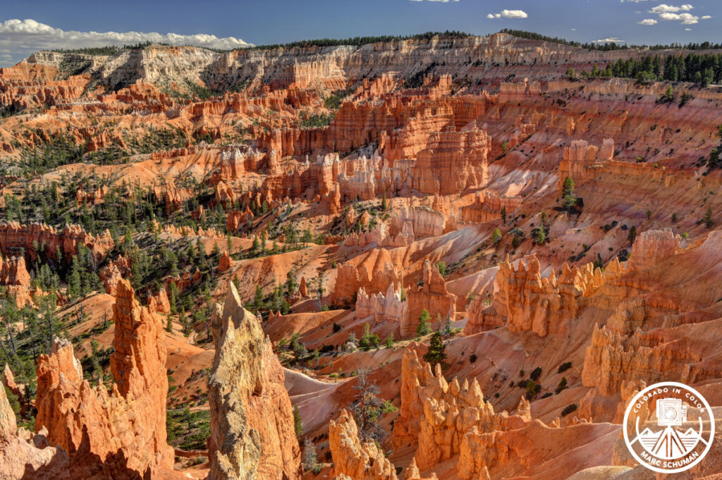 On a day of perfect weather marked by magic late afternoon light this scene at Bryce Canyon National Park overwhelms the mind with infinite details of structure, light, and shadow. Pinnacles of every conceivable shape demonstrate the power of water, wind, chemical reactions and incomprehensible spans of time.