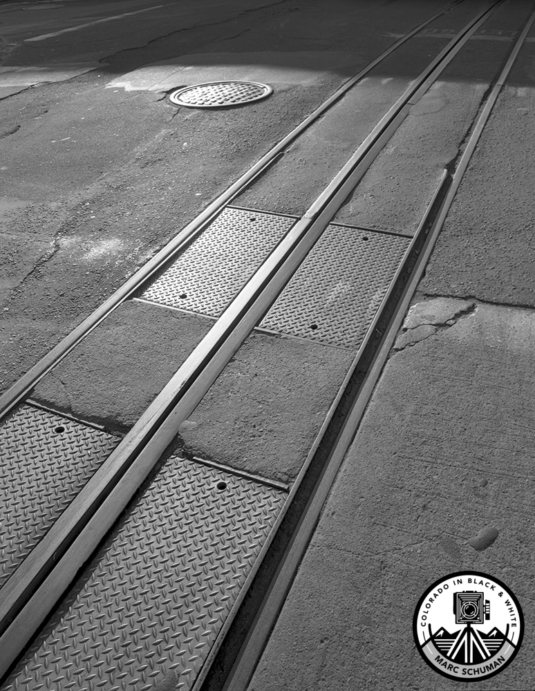The tracks and access plates to the underground infrastructure necessary to keep San Francisco’s famous cable cars running provide for an interesting late afternoon abstract city scape. Taken with a Koni Omega Rapid M medium format camera fitted with a 58mm Hexanon wide angle lens on Kodak film.