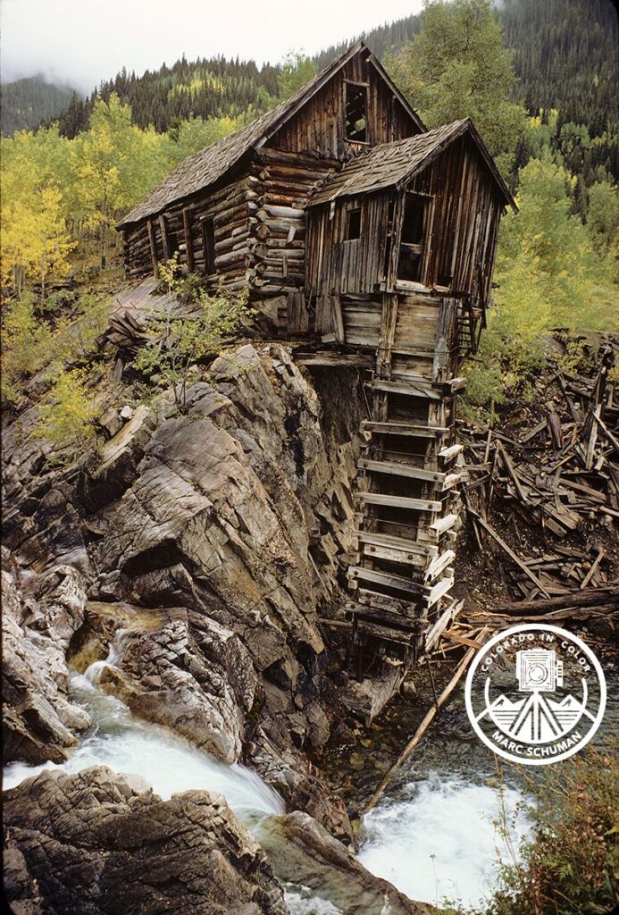 Taken at the height of fall colors on a misty fall day the Crystal Mill sits on its rocky perch as the Crystal River rushes past. There may be no more photographed structure in all of Colorado than this iconic mill, which is not a mill at all, but an abandoned powerhouse.