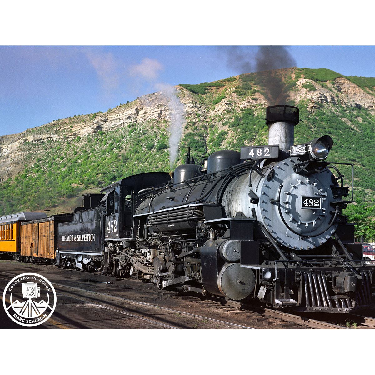 Durango and Silverton Narrow Gauge 2-8-2 “Mikado” Engine No. 482, Durango, Colorado, July, 1992.