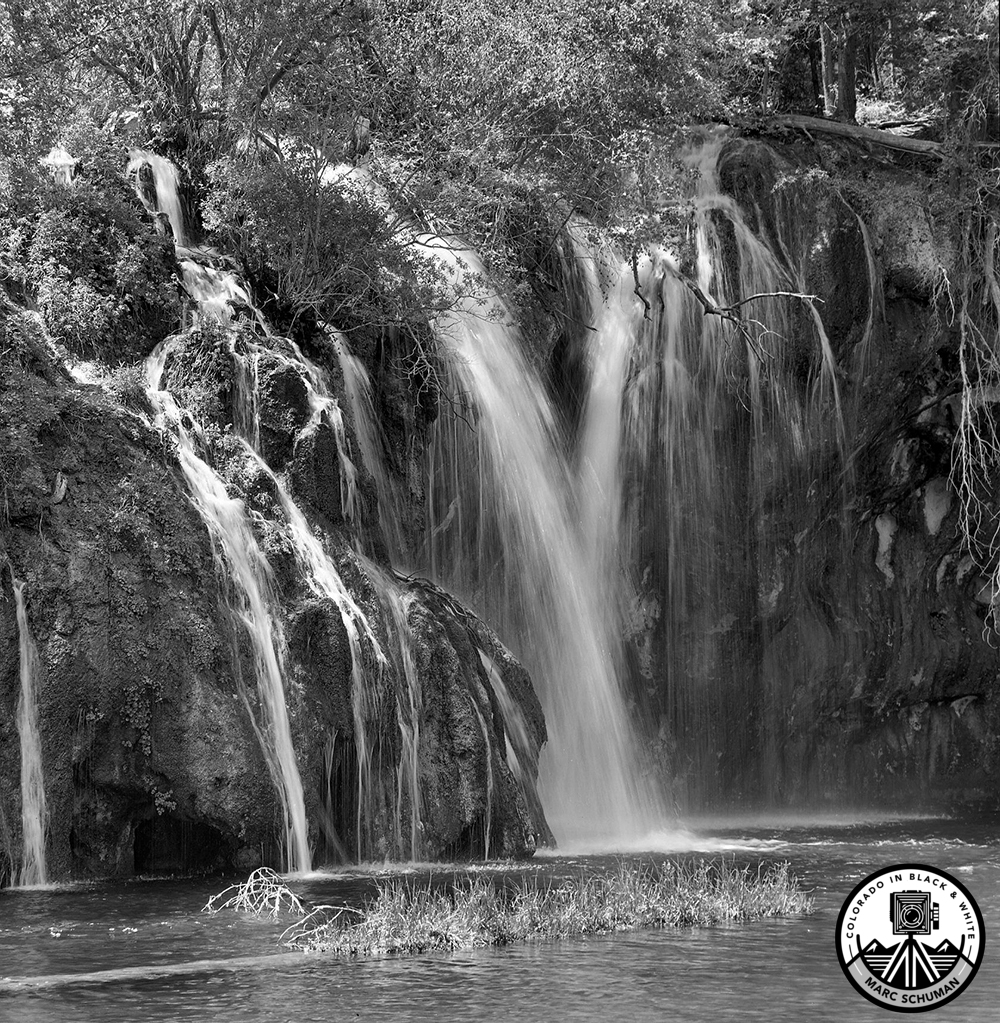 “Once upon a time in a place far far away,” so the saying goes, the hiking trail from the gravel parking lot adjacent to old two-lane Hiway 6 in Glenwood Canyon to delicate Hanging Lake in a side-canyon to the north was a rugged thousand-foot vertical rise in about a mile and a quarter. No reservations were needed. One could simply drive to the parking lot and begin the hike at a time of one’s choosing. No more. With the completion of its eponymous tunnels and the four-lane I-70 roadway through Glenwood Canyon in 1992, hiking traffic increased many-fold over the ensuing years, requiring reservations days in advance. Over-use of the primitive trail, which remains substantially the same as it’s always been, has necessitated tight controls on the volume of hikers allowed to make the climb in order to preserve the lake’s fragile ecology. In recent years a disastrous fire throughout much of Glenwood Canyon threatened Hanging Lake’s very existence, but the area was spared. A visit to this lake continues as one of the most scenic and accessible hikes in Colorado. Image made on Kodak black and white film with a Rolleiflex 2.8F medium format camera equipped with a Carl Zeiss 80mm f2.8 Planar lens.