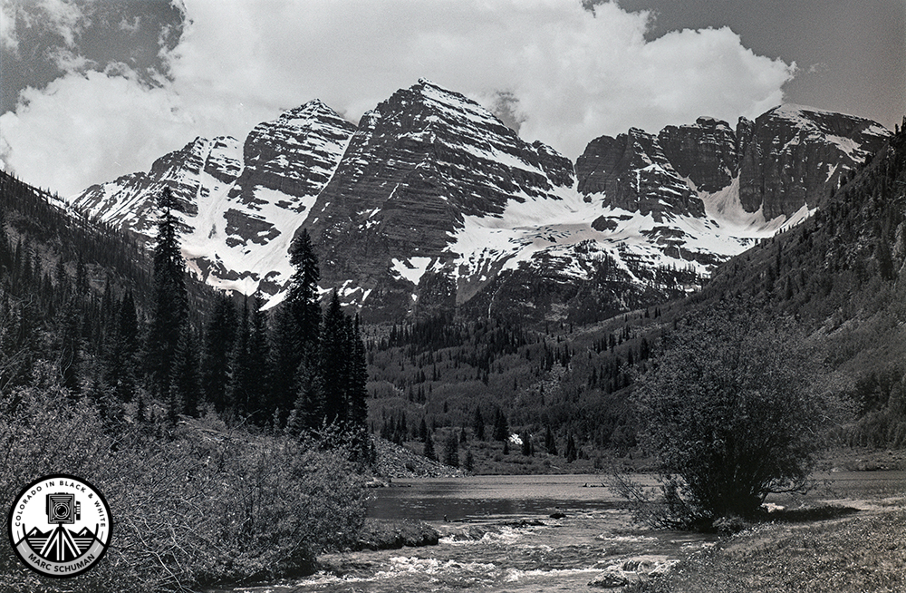 Maroon Bells nr. Aspen, Colorado, Spring, 1976.
