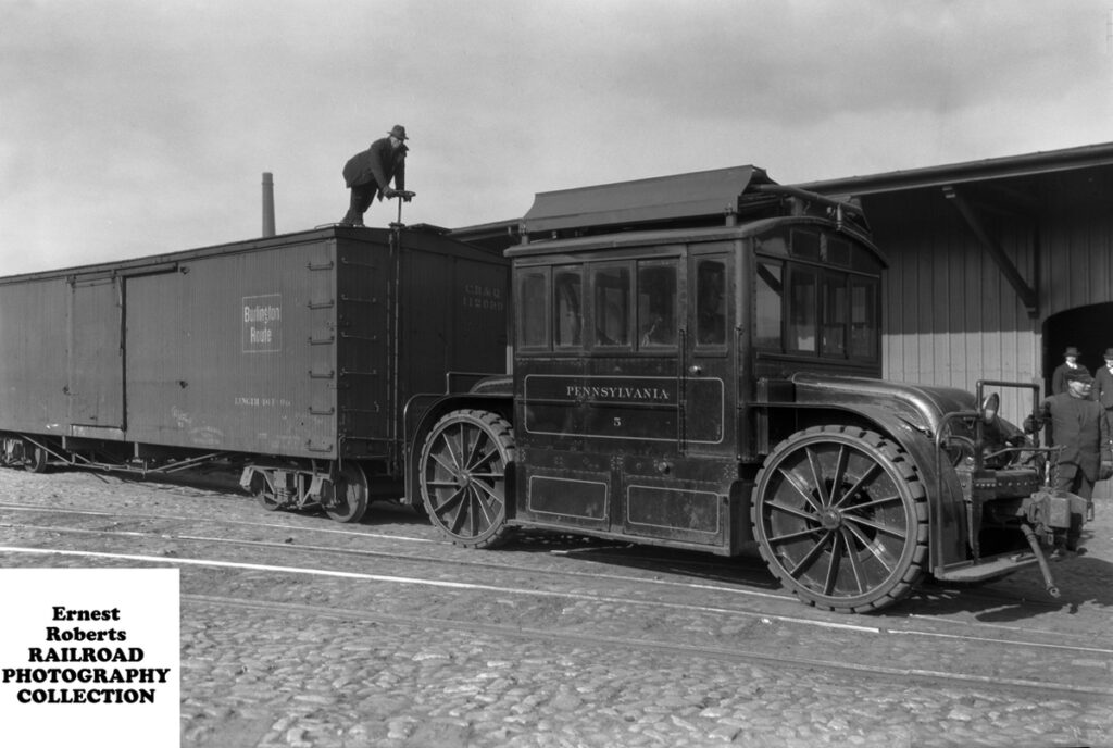 Pennsylvania Railroad Tractor Pulling Rail Car, Location Unknown, November 25, 1917