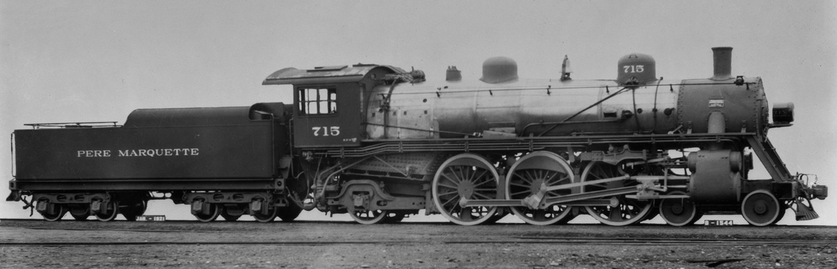 Pere Marquette 4-6-2 “Pacific” SP-3 Engine No. 715, Location Unknown, Date Unknown