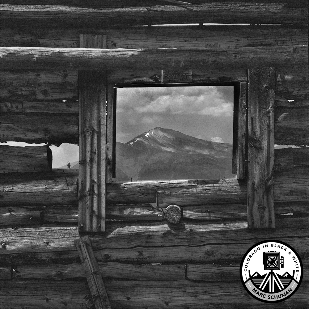 Quandary Peak through West Cabin Window, Boston Mining Camp, Mayflower Gulch, Colorado, July 20, 2024