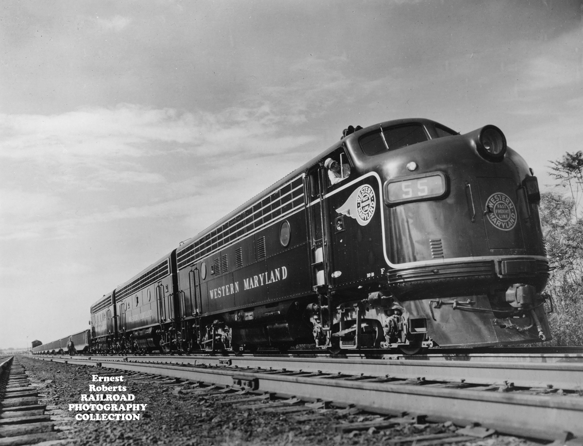 Western Maryland Railroad Lead Engine No 55 of a Three Diesel Engine Consist, Date and Location unknown, from The Ernest Roberts Railroad Photograph Collection.